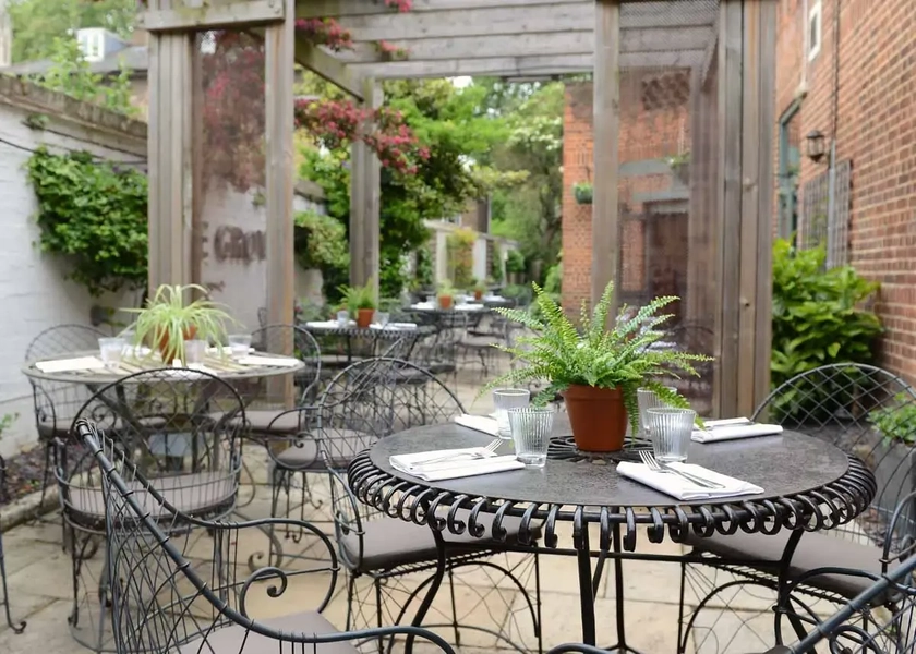 Dine alfresco in our summer dining gardenOur beautiful garden wraps around the building from the front patio all the way to our summer dining garden.